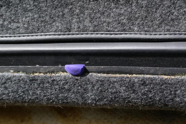 The seal it its maximum compression was 6mm thick so at least 5mm had to be trimmed off the lip. Out with a short bladed jig saw and 6m was removed from the lip and the carpet trimmed back. The seal was refitted and it all looks good. The real test will come when it rains though.