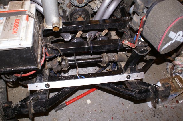 Some pictures at last. Here's the lower rail for the rad. The pegs are held in by mushroom headed bolts and the grommits are fitted.
