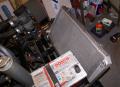 Another couple of hours spent in the garage today. Dropped the rocker covers in place to keep crud out of the engine. Will bolt these into place just before I fire it up as I want to pour some oil over the valve train. The dizzy has been fitted and a few of the coolant pipes are now fitted. I've now started to look at the radiator and how to fit the alloy MGF rad I've aquired. It looks to be an easy fit using lengths of rectangular section alloy top and bottom that have holes to take the lugs on the rad. The bottom piece will then have lugs that fit into the existing rad mounts. Side supports will be manufactured from some strips of steel that I have lying around. New fans will be required - probably 2 x 10" units to give redundancy plus they are about the height of the core. Just need to find some 10mm alloy rod and some grommits with an ID of 13mm.