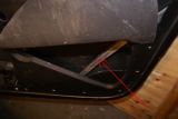 I then moved my attention to the hinge and discovered that the top hinge pivot (a large 8mm cap headed bolt) was loose. A quick tweak with an allen key soon had the door running true with no droop. I found it was easier to take the weight of the door in one hand and tighten the cap headed bolt with the other. While I was at that end of the door I found that the foam covered guide for the flexible window lifting thing (can't think what it is called) was sitting in the end of the door. I'd not noticed it tucked away before I'd assumed that it was left out by a previous mechanic. It's not a small item to lose in a door as you can see from the pic. This was refitted and secured with a jubilee style clip.