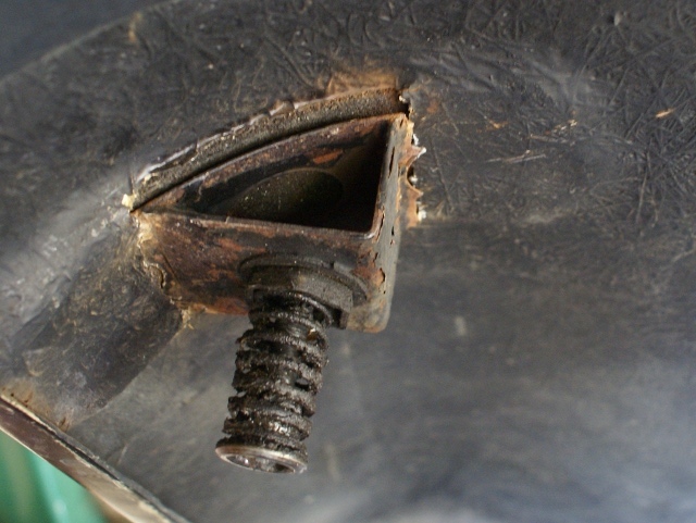 The car passed the MOT last month without problems. A few weeks ago (on the way to my wedding) I noticed the rear of the bonnet was loose on the nearide, you could lift it a bit. This weekend I had a good look and discovered that the metal bracket that the sriker is fixed to had fractured. The repair was straight forward, cut the GRP fixing away from the broken lug, cut and form a strip of steel to replace the broken lug, weld into place, stick in place with contact adhesive and then glass over the new lug. A lick of paint on the bracket and the job was done.