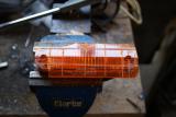 Next the outer pieces of plastic were removed by bending them inwards until the join broke. If they didn't want to easily seperate a shar chisel was slid into the join and the bond would usually crack. Take your time and wear eye protection because the lens plastic is very brittle.