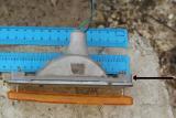 Unit removed showing the size. The spacer ( arrowed ) can be removed and this gives the unit an overall thickness of 15mm.